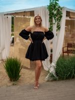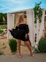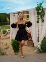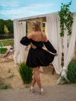 Sukienka muślinowa w kroju bombki z bufiastymi rękawami czarny