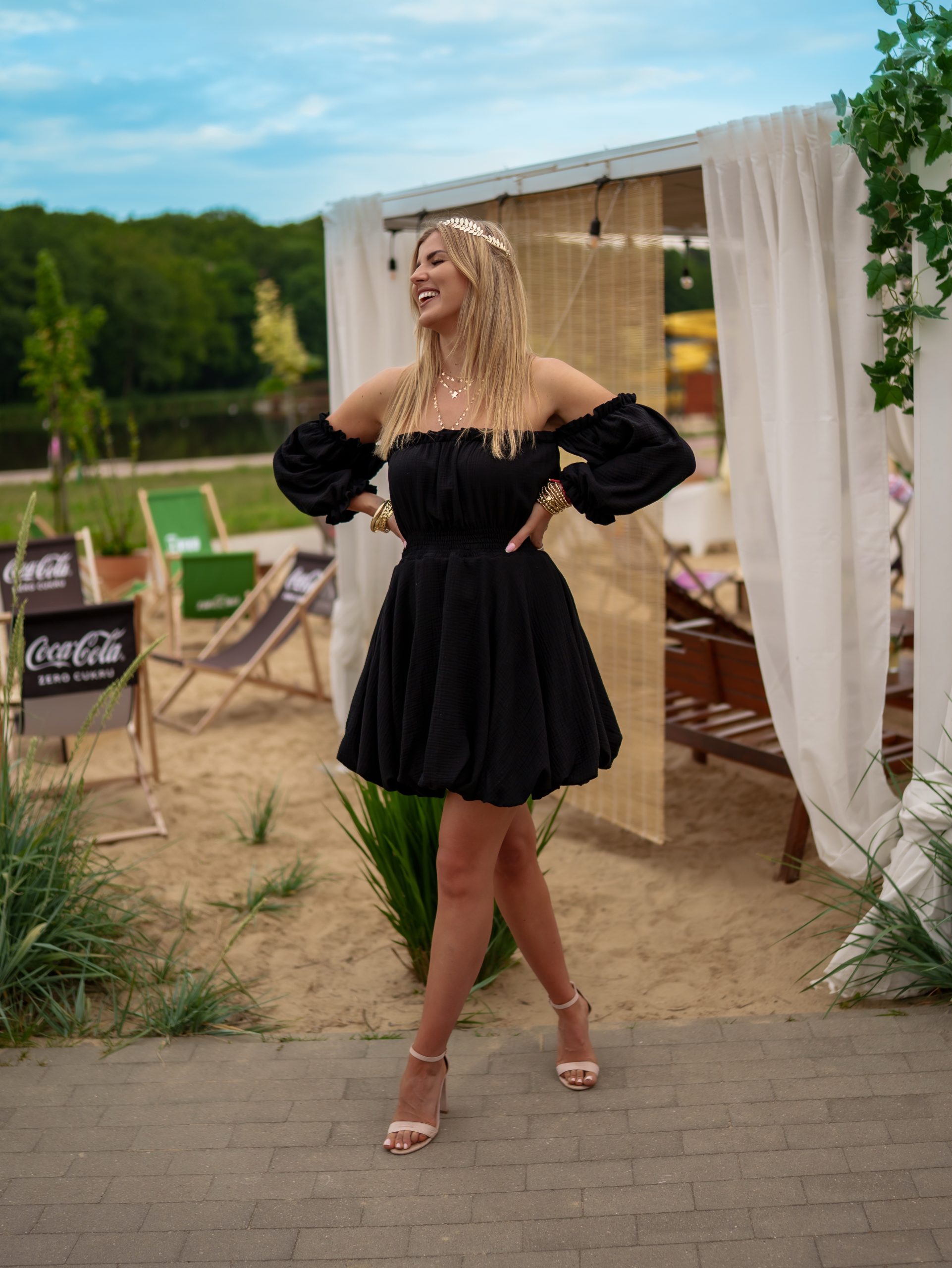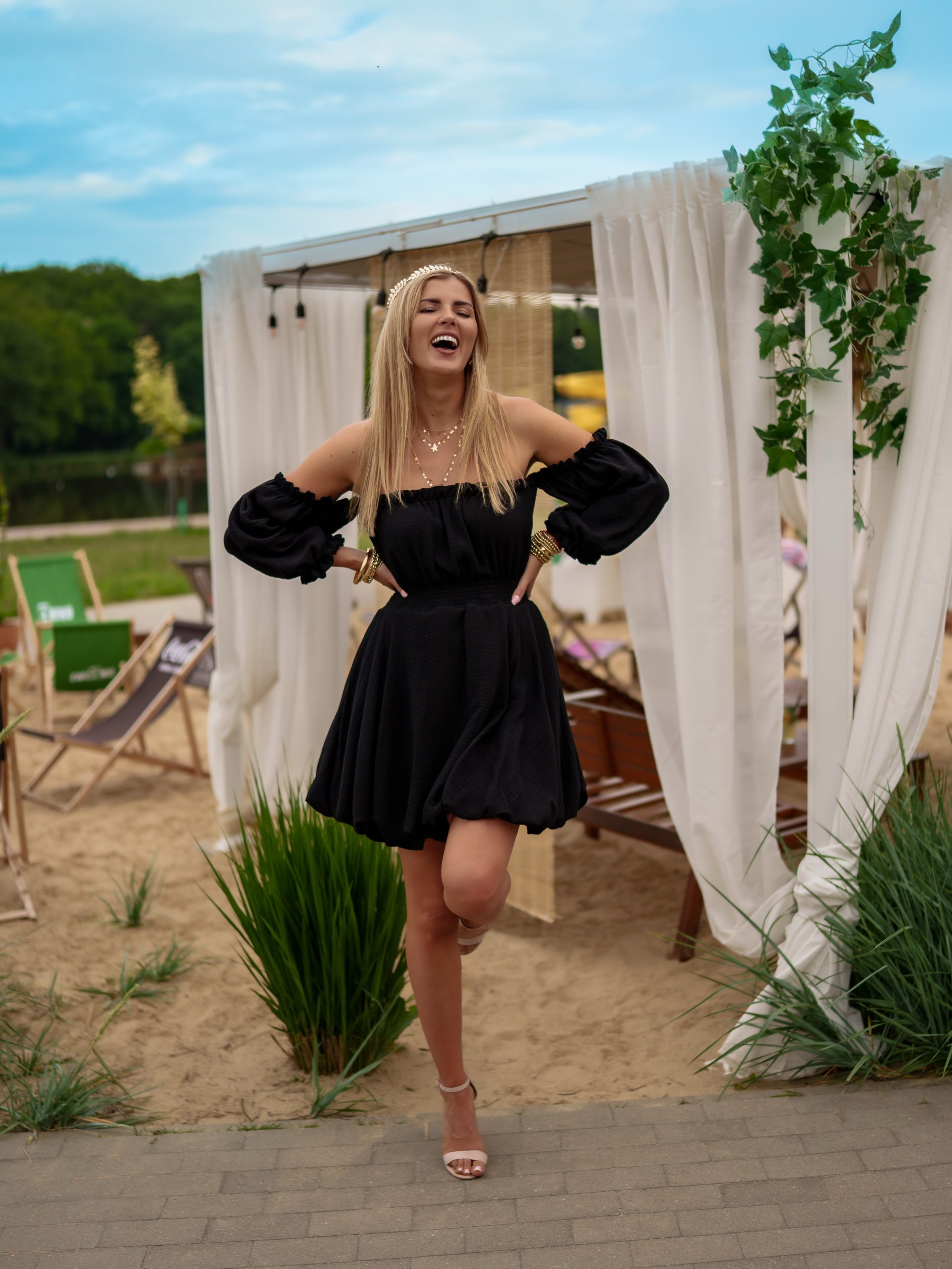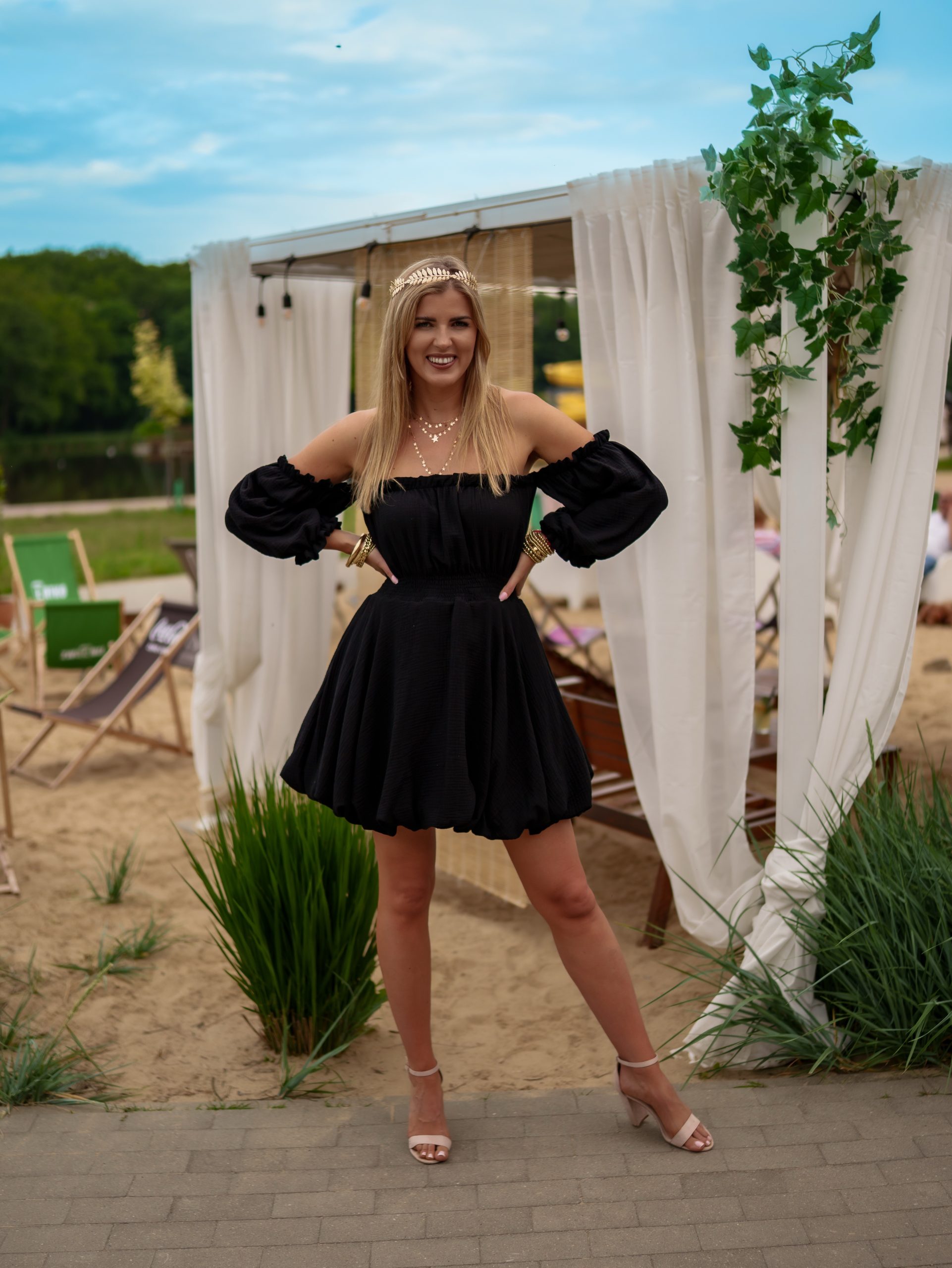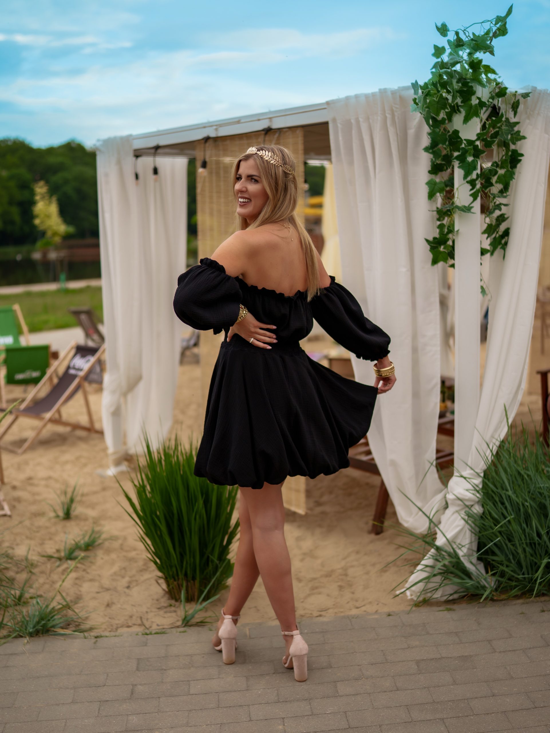 Strona główna Boho Sukienka muślinowa w kroju bombki z bufiastymi rękawami czarny