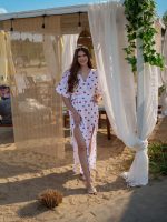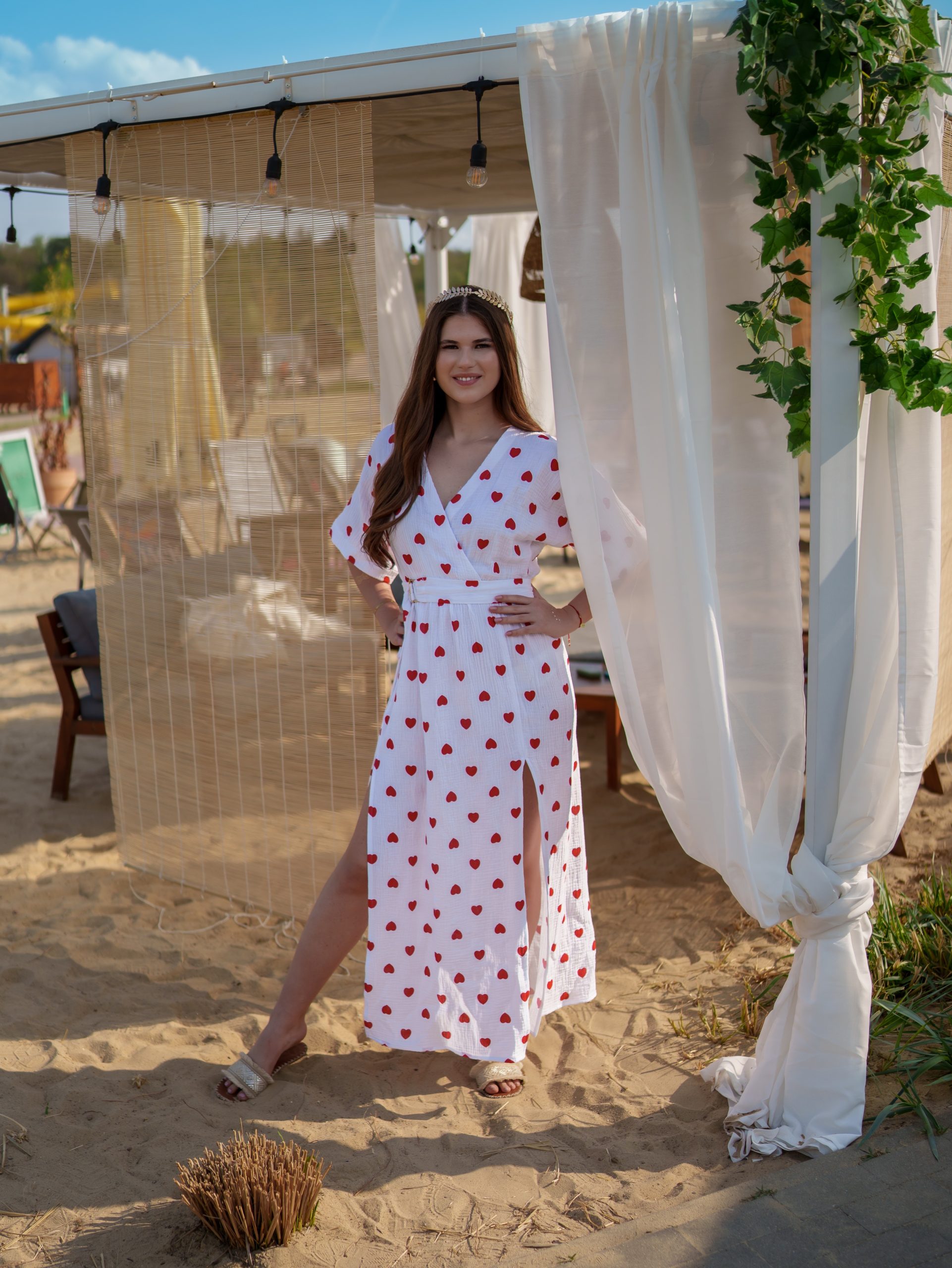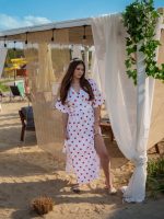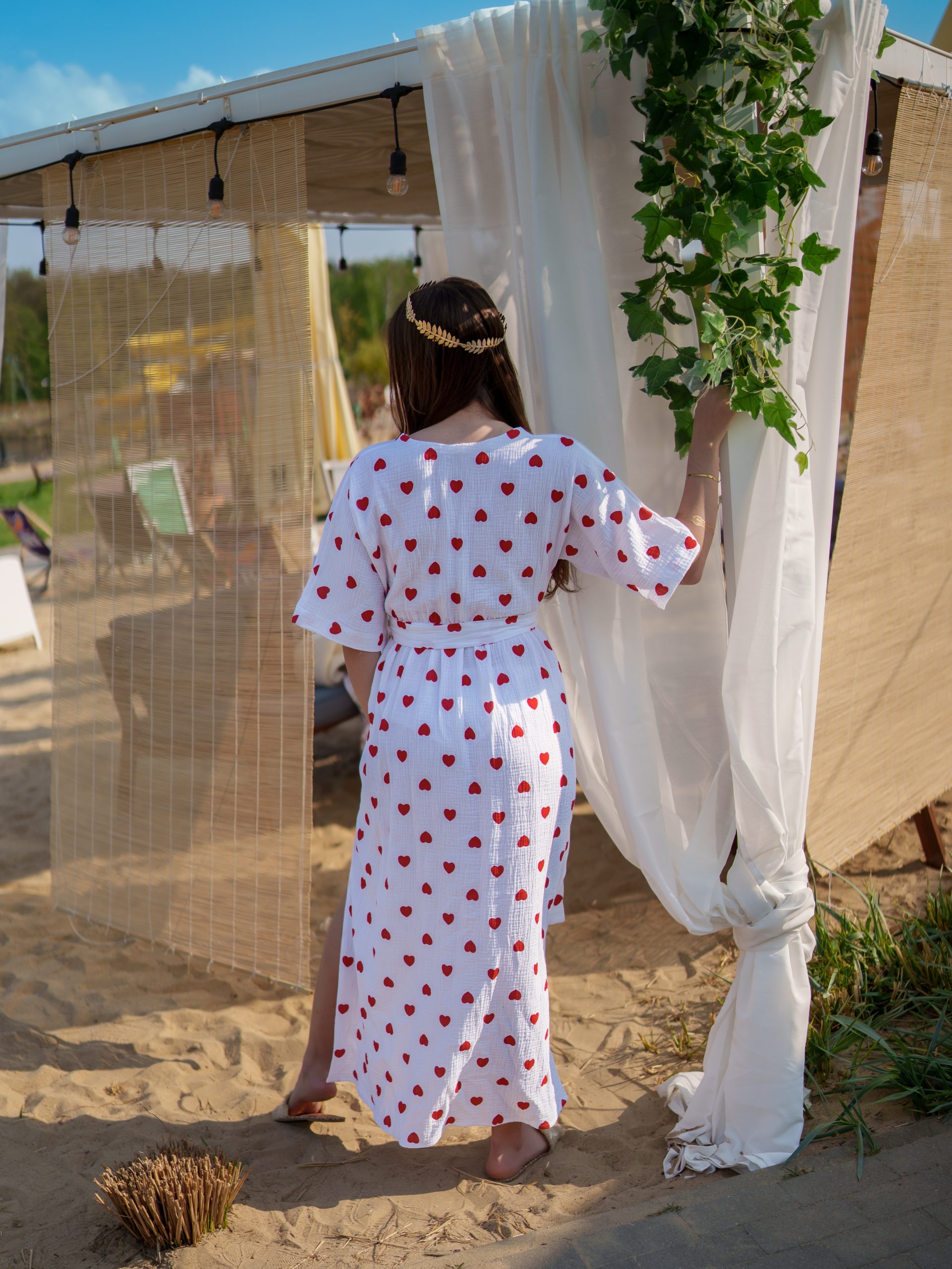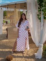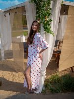 Strona główna Boho Sukienka muślinowa z dwoma rozcięciami i kimonowym dekoltem biała w serduszka