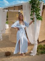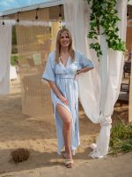 Strona główna Boho Sukienka muślinowa z dwoma rozcięciami i kimonowym dekoltem błękitny