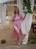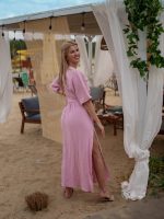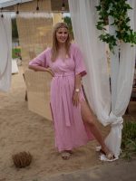 Sukienka muślinowa z dwoma rozcięciami i kimonowym dekoltem różowy