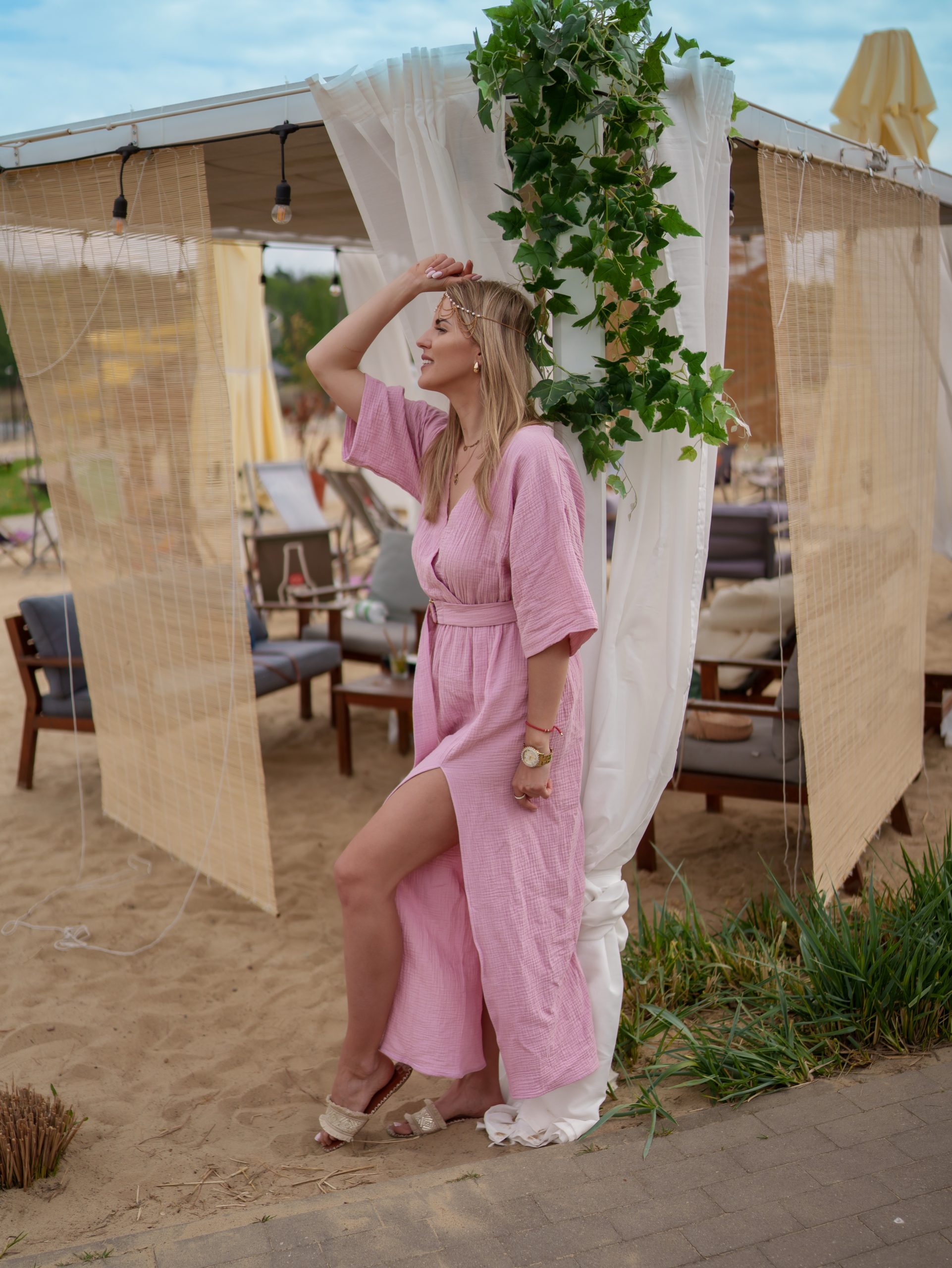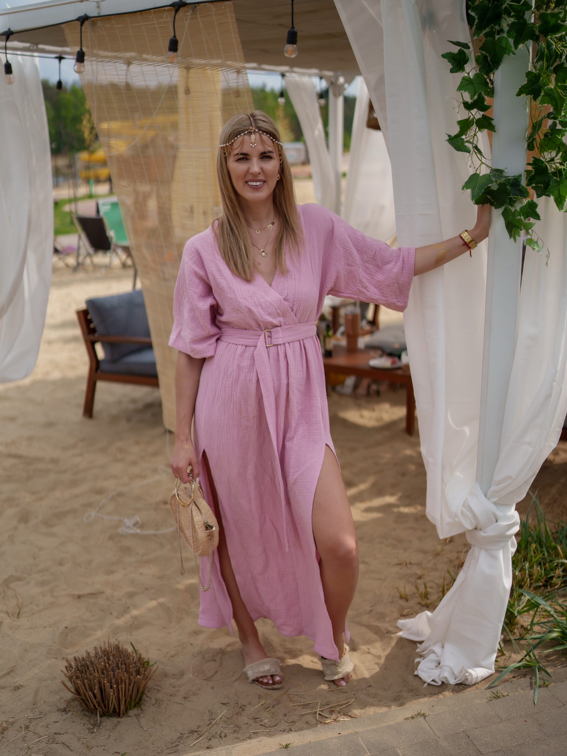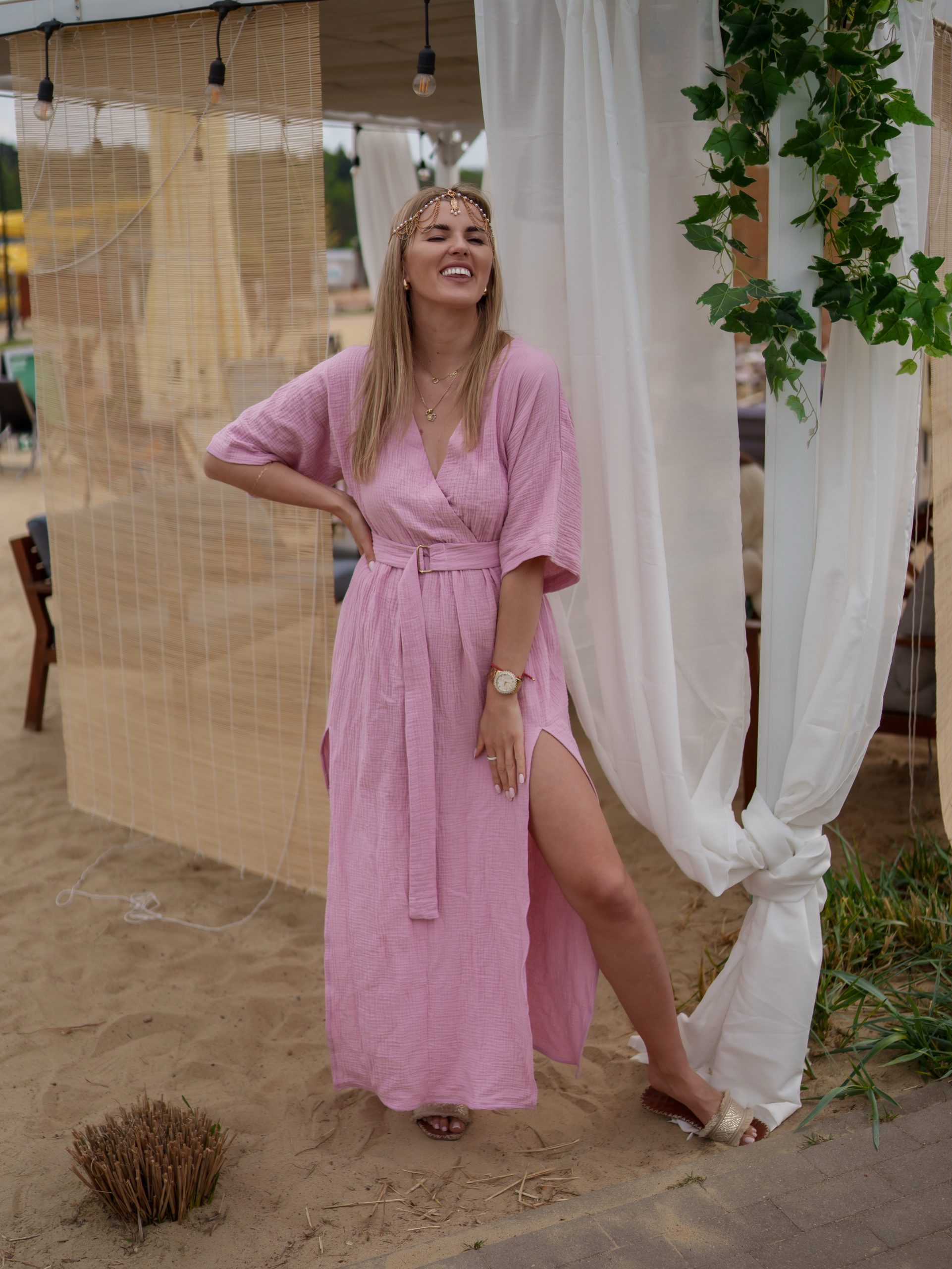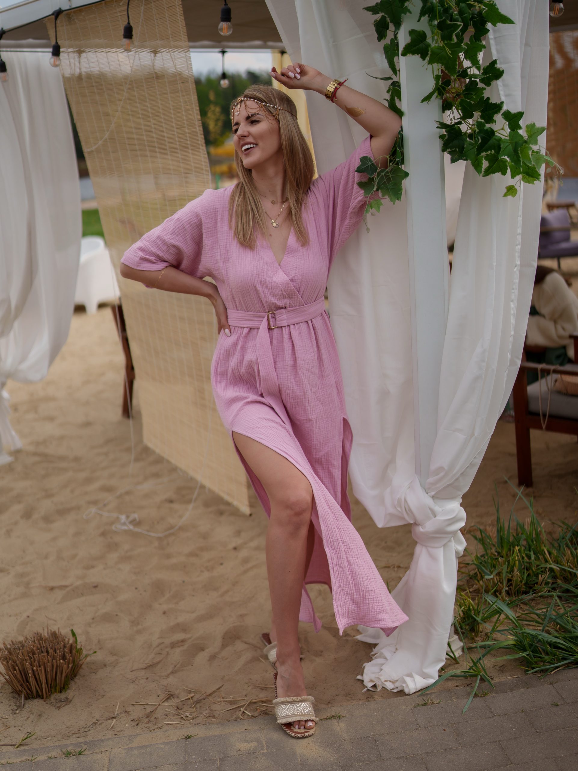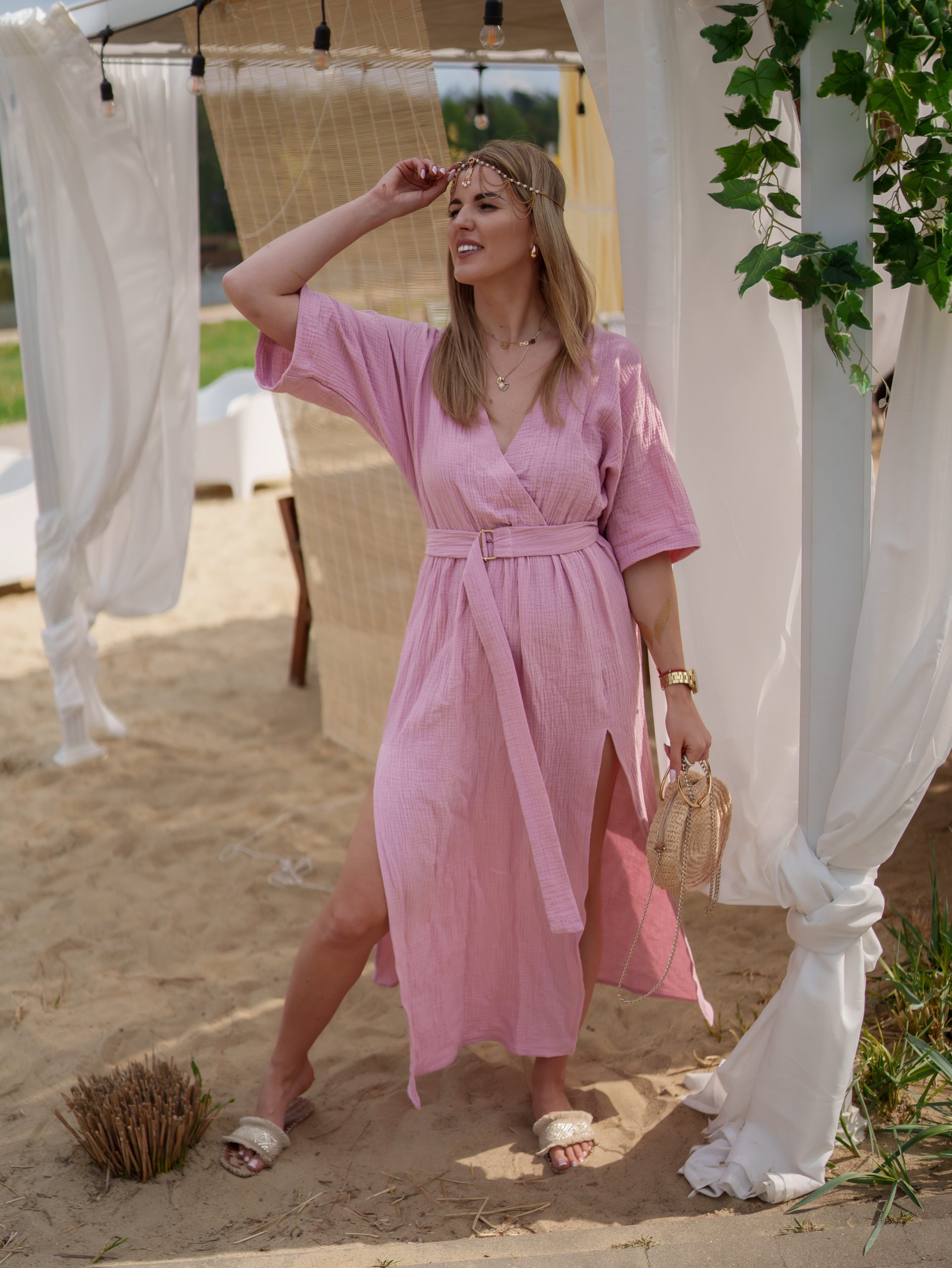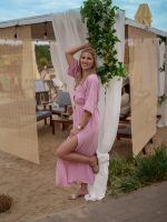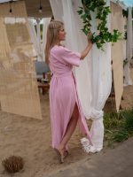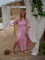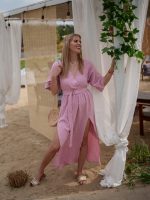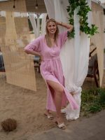 Strona główna Boho Sukienka muślinowa z dwoma rozcięciami i kimonowym dekoltem różowy