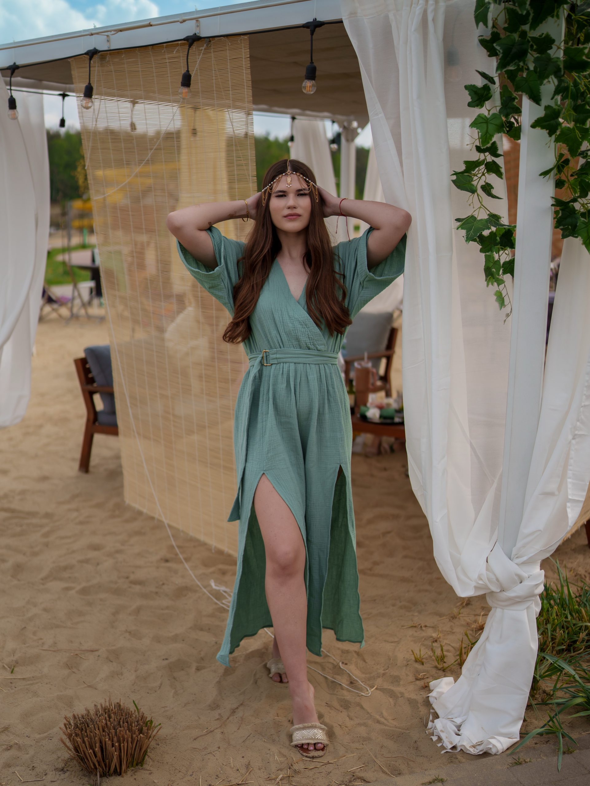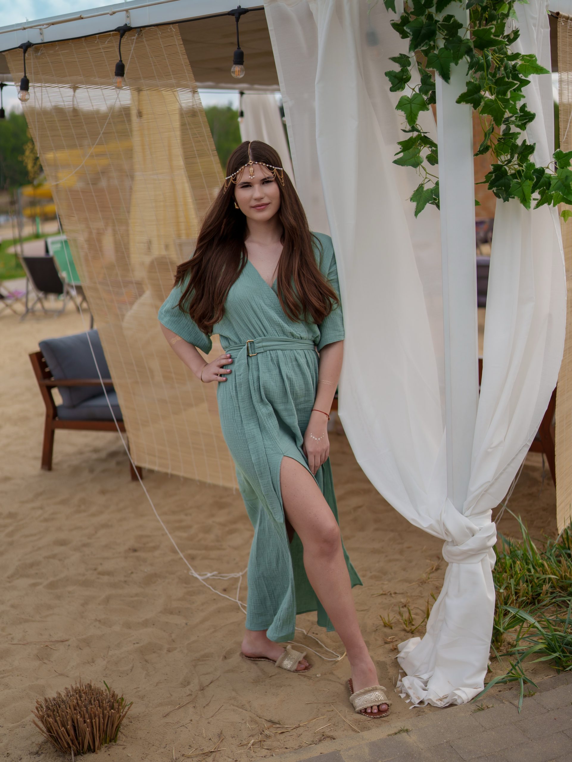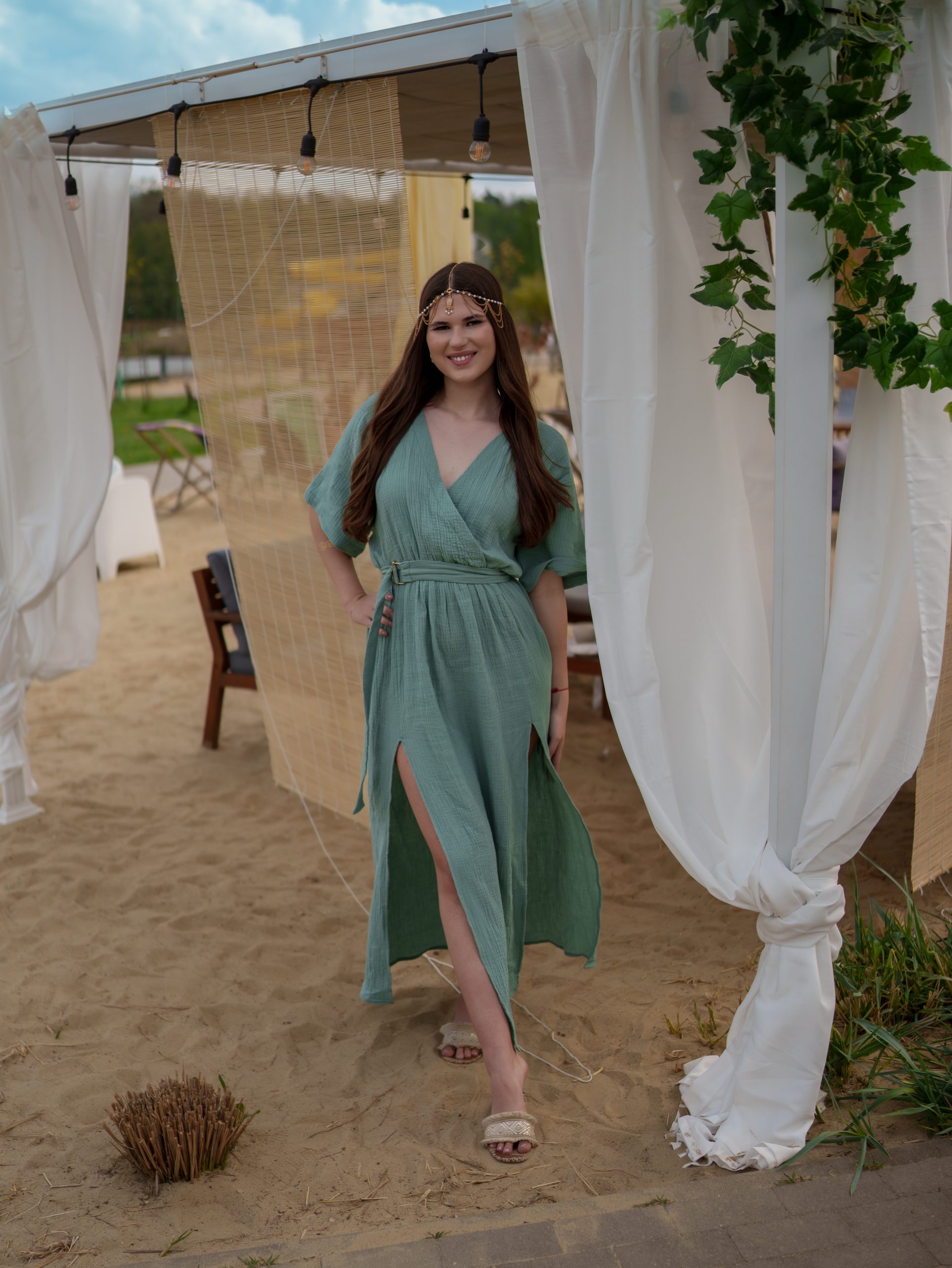 Sukienka muślinowa z dwoma rozcięciami i kimonowym dekoltem – lekkość, styl i kobiecość